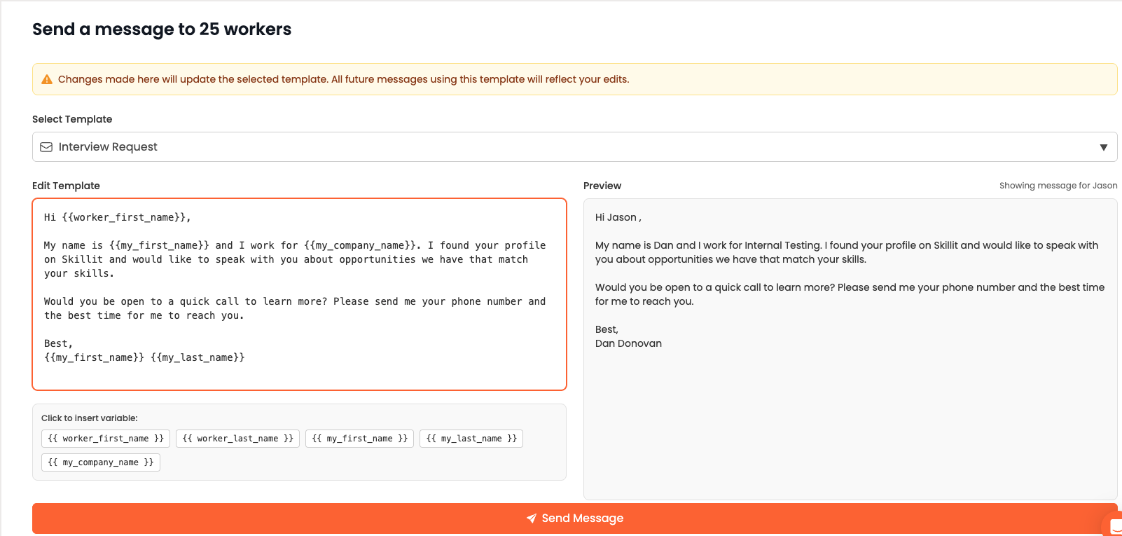 Skillit’s bulk messaging makes it easy for recruiters to customize outreach, personalize messages and alter templates for future bulk messaging efforts. Additionally, it provides a preview so you know exactly what you are sending to these candidates. Managing responses to bulk messages (and all messages) has been simplified by the Skillit team as well. In tandem with bulk messaging, the Skillit team released the Smart Inbox feature to help manage messages and communications with workers at scale. Click here to learn more about the Smart Inbox feature. These two products coupled together offers a seamless, all encompassing way to scale your craft recruiting for fast and easy hiring on the Skillit platform.