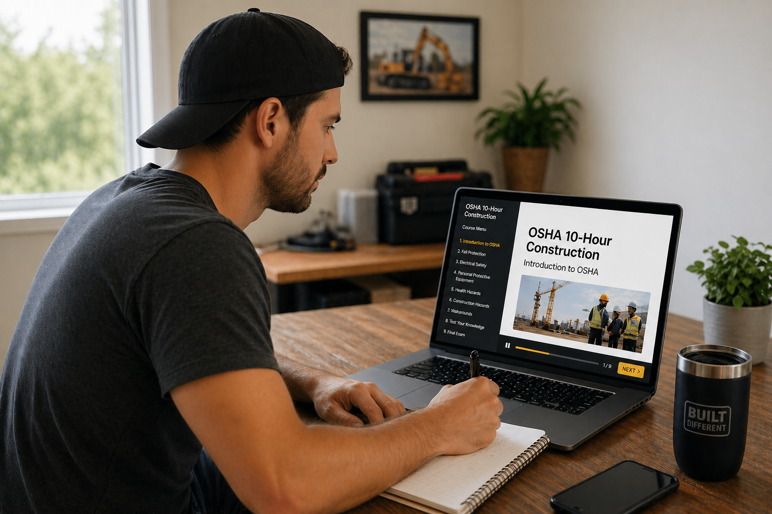 Complete OSHA 10 through an authorized online provider. Find one at osha.gov/otiec. Cost: typically $25–$75. Time: 10 hours, usually done over 1–2 days.